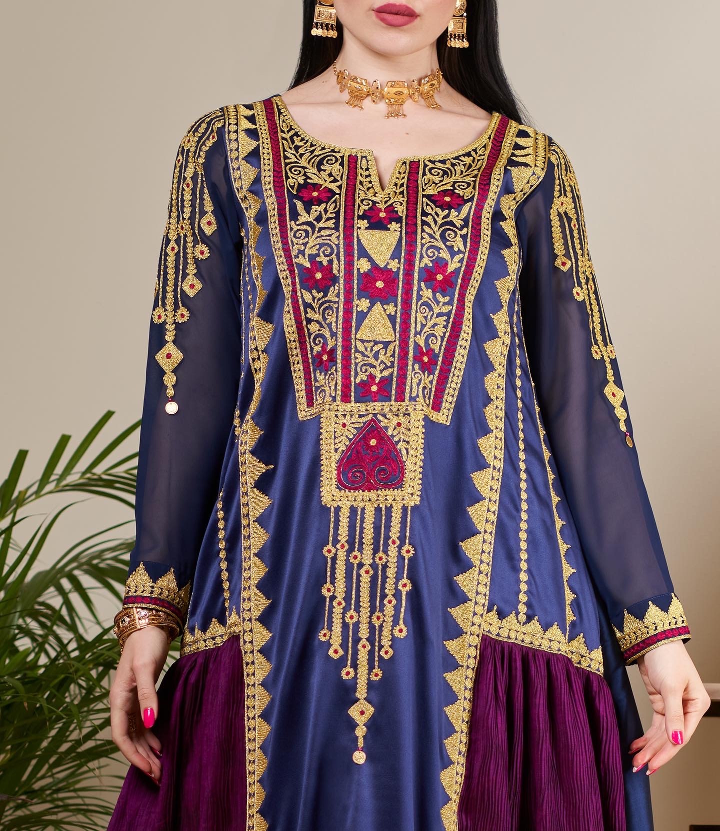 Geometric Embroidery in Navy blue and Maroon.